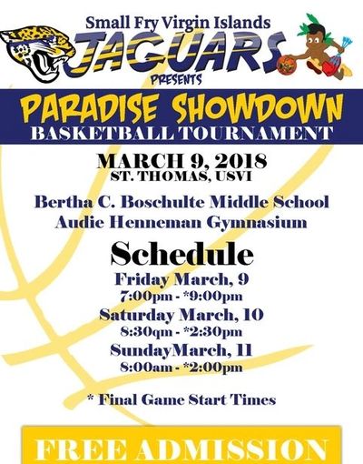 The 2018 V.I. Jaguars Basketball Team won the 2018 Paradise Showdown. Teams from the U.S.V.I., Puerto Rico, and St. Croix competed in the tournament. Neltjeberg Bay Enterprises paid for all teams to travel and compete in the tournament. Which included airfare, hotel accommodations, food, etc. After the tournament, a pig roast was held at Magens Bay Beach for all participants.